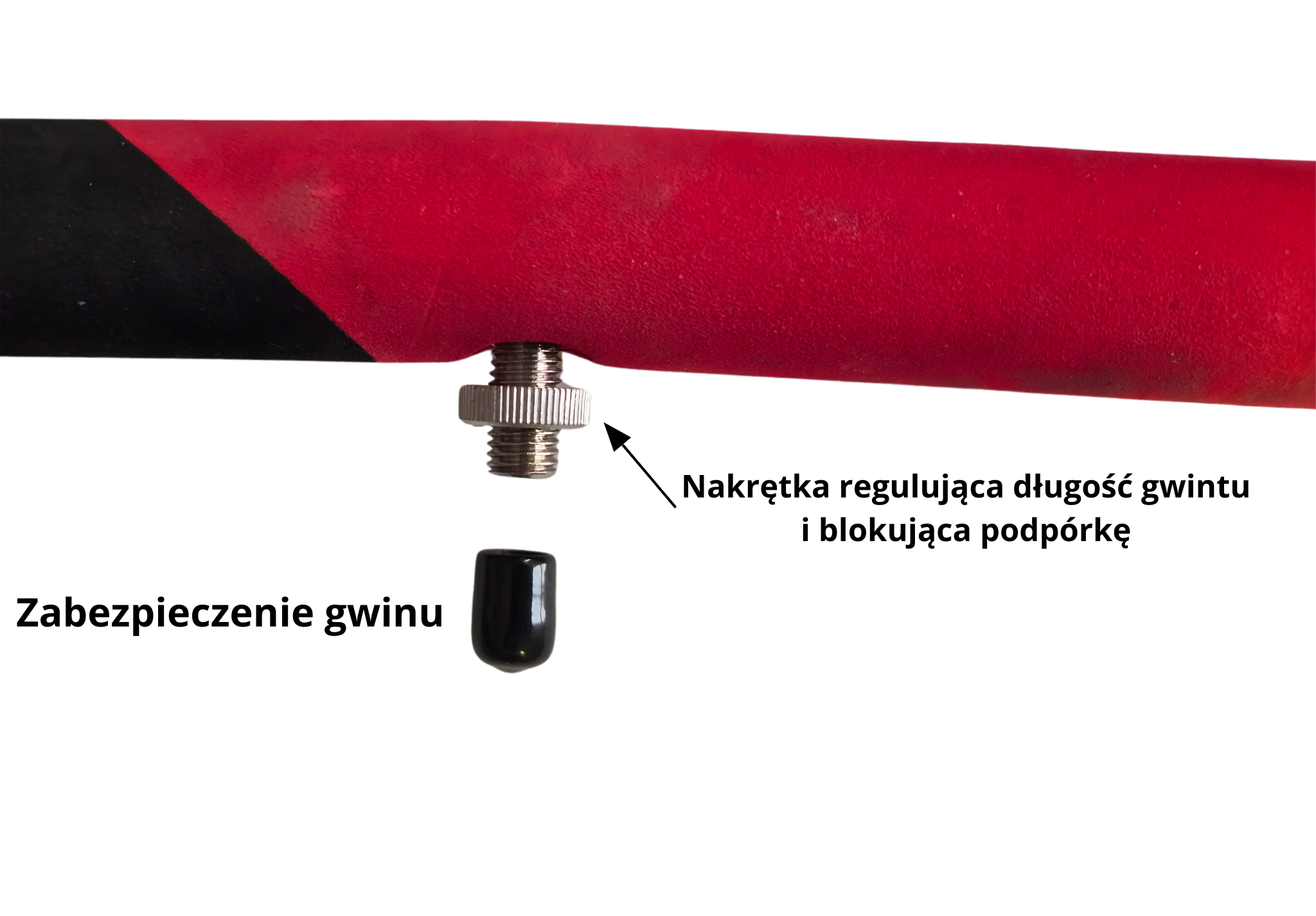 Dodatkowo regulacyjna nakrętka pozwalająca skrócić lub wydłużyć śrubę oraz blokująca obracanie się podpórki podczas łowienia.